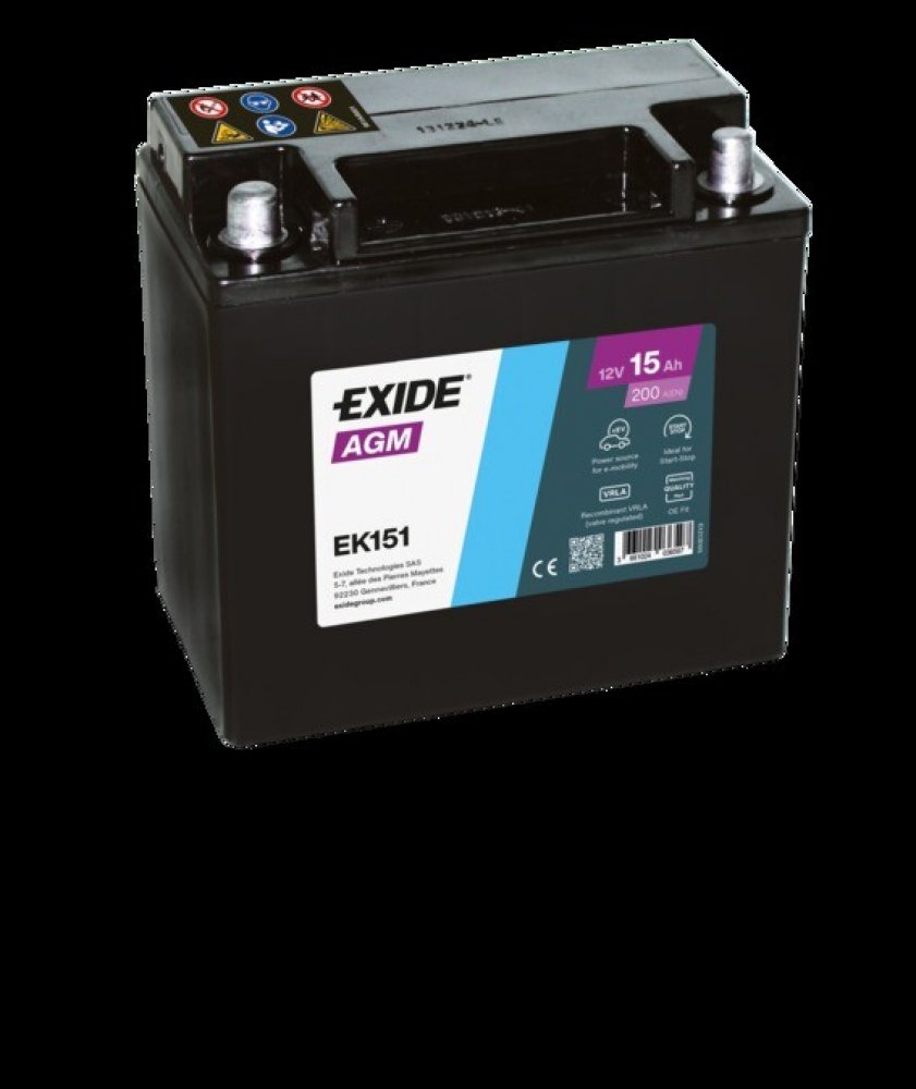 12 V 200 A Exide levé 15 Ah AGM 145 mm 90 mm 150 mm 5 kg