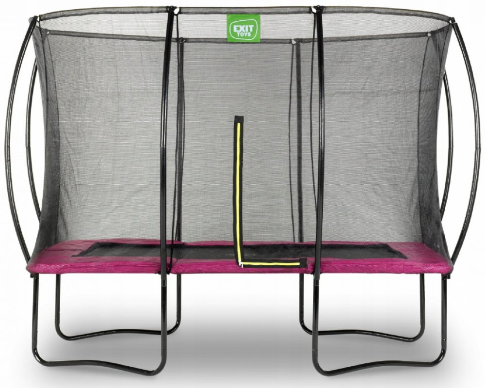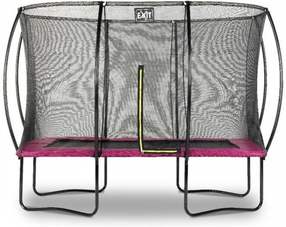 Trampolína EXIT Silhouette 214x305cm - růžová Trampolína EXIT Silhouette na nohách je kompaktní obdélníková trampolína s matně růžovým polstrováním. Ochranná síť je standardně dodávána s trampolínou na nohou a ze zakřivených podpěr visí velmi napnutá. To je nejen velmi bezpečné, protože děti se nemohou zamotat do sítě, ale také to vypadá mnohem hezčí ve vaší zahradě. Bezpečnostní síť má poutavý fl...