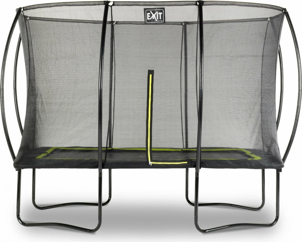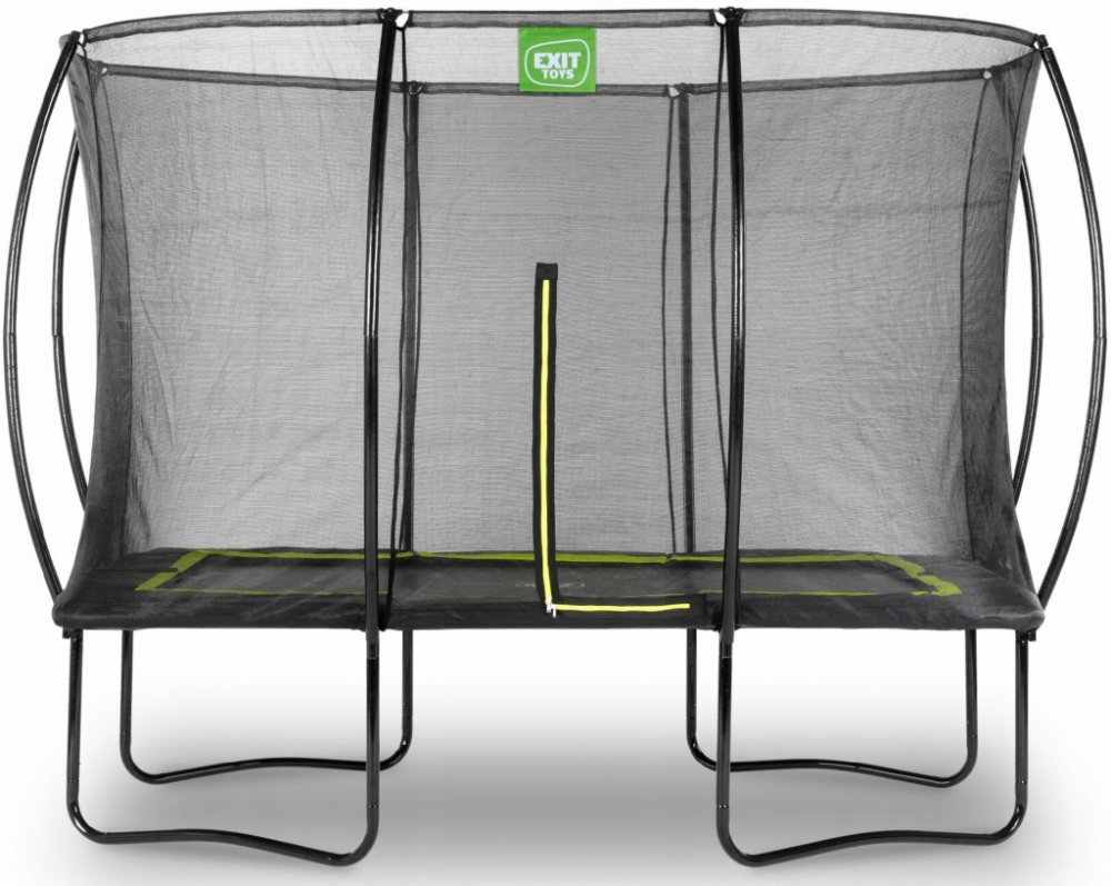 Trampolína EXIT Silhouette 214x305cm - růžová Trampolína EXIT Silhouette na nohách je kompaktní obdélníková trampolína s matně růžovým polstrováním. Ochranná síť je standardně dodávána s trampolínou na nohou a ze zakřivených podpěr visí velmi napnutá. To je nejen velmi bezpečné, protože děti se nemohou zamotat do sítě, ale také to vypadá mnohem hezčí ve vaší zahradě. Bezpečnostní síť má poutavý fluorescenčně zelený zip, takže můžete okamžitě vidět, zda je zip správně uzavřen. Vysoce kvalitní polstrování zcela pokrývá pozinkované pružiny a má speciálně vyvinutý bezpečnostní systém pro nohy, který zabraňuje zamotání nohou do pružin. Robustní pružiny zaručují velkou sílu skákání. Rám trampolíny Silhouette je pozinkovaný a potažený práškovou barvou, takže žádná šance na rezivění. Trampolíny EXIT Silhouette jsou cool, robustní a zaručují nekonečnou zábavu při skákání! Obsahuje: Trampolína Růžové polstrování 72 pozinkovaných pružin 16,5 cm 4 kovové W-nohy Bezpečnostní síť se zipem Pružinový hák Manuál