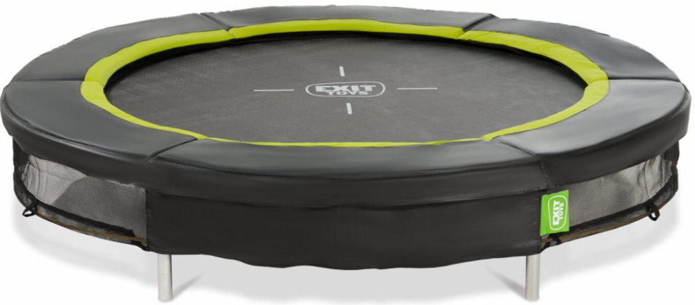 Trampolína zabudovaná do země s moderním designem za skvělou cenu. Přízemní trampolína 2,44 m SILHOUETTE je zabudovaná do země Při výrobě trampolín Exit Silhouette byl kladen důraz na bezpečnost jako u ostatních trampolín Exit a také hlavně na moderní design, který se hodí do každé zahrady. Trampolína má mezi skákací plachtou a ochranným límcem pružin síťku, která zabrání, že skákající má přístup k pružinám a je tak eliminováno zranění. Bezpečí skákajícího je na prvním místě. Rám je pokrytý černou práškovou barvou, což nedá šanci korozi a do stejného designu je laděn i ochranný límec s bezpečnostním systémem. Technické parametry Průměr rámu 244 cm /8ft/ Průměr skákací plochy 190 cm Výška rámu 19 cm Výška trampolíny s rámem 19 cm Váha 31 kg Nosnost jednoho skákajícího 80 kg Maximální zatížení 400 kg Ochrana proti pružinám bezpečnostní systém proti pádu do pružin Certifikace TÜV, EN -71 Kvalita skoku 3/5 Dobrý Počet pružin 42 kónických Rozměr pružin délka 140 mm, šířka 24,5 mm, tloušťka 3,2 mm Materiál rámu Galvanizovaná ocel pokryta práškovou barvou Rozměr trubek rámu průměr 3,8 cm, tloušťka 1,5 mm Rozměr stojných tyčí průměr 3,8 cm, tloušťka 1,2 mm Materiál ochranného límce PVC/PE/EPE Rozměr ochranného límce tloušťka výplně 2 cm, šířka 28,5 cm Stojné nohy 3 ve tvaru U se 6ti stojnami Spojovací materiál rámu "klik systém" Rozměry balení 130x45x21 cm Podrobný návod na výkop pod trampolínou najdete v přiloženém návodu. Je to velmi jednoduché. Díra se vykopává ve tvaru misky s hloubkou udanou na středu díry. Postupně k okraji se díra odkopává do tvaru misky. Trampolínu složíte vedle díry a hotovou ji usadíte a ukotvíte přiloženými kolíky. Výkop pod trampolínou doporučujeme vystlat geotextilií.