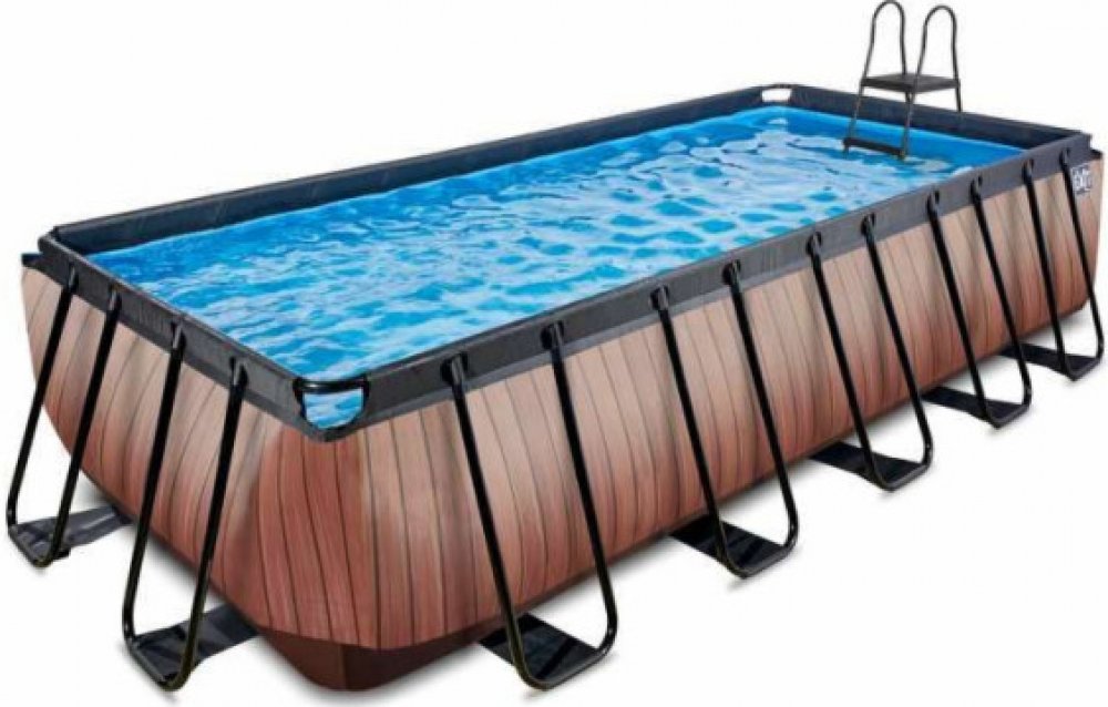 Bazén EXIT Wood Pool 540 x 250 x 122 cm je bazén s obdélníkovým rámem a dřevěným vzhledem. Tento velký bazén je standardně vybaven filtračním čerpadlem Sand a bazénovým žebříkem, který umožňuje bezpečný vstup a výstup z bazénu. Rámový bazén nabízí dostatek prostoru, abyste se mohli vyřádit na nafukovací matraci. Chcete se raději potápět? Bazén EXIT Wood je hluboký 122 centimetrů, takže se v něm můžete skutečně ponořit pod vodu. S vysoce kvalitním rámovým bazénem EXIT Toys si zaručeně užijete ta nejúžasnější vodní dobrodružství na vlastní zahradě! Osvěžující koupání ve vašem bazénu! Bazén Wood Pool má na boční stěně modern výrazný vzor dřeva, díky němuž na zahradě upoutá pozornost. Bazén EXIT má silné třívrstvé stěny z PVC a polyesteru a vnitřní strana bazénu je modrá, abyste měli pocit svěžího bazénu. Bazén je vhodný až pro devět osob, a protože je hluboký, můžete si v něm zaplavat i v plaveckých drahách a ponořit se. Tento bazén doplňuje dodávaný systém cirkulace vody. Vysoce kvalitní filtrační čerpadlo Sand čistí bazén od nejmenších částic tím, že čerpá vodu přes filtrační vrstvu. Tím je zajištěno, že nečistoty, jako jsou Sand , brouci nebo řasy, skončí ve filtru. Stabilní a silný! Rámový bazén je nejen jedinečný, ale také stabilní a pevný. Černý ocelový rám bazénu je mimořádně silný, má průměr 50 mm a nohy rámu zajišťují optimální stabilitu, takže bazén vždy stojí pevně. Samozřejmě se myslelo i na odolnost: černý rám je pozinkovaný a opatřený práškovou barvou, takže rez nemá šanci. Duplexní nátěrový systém je to, co nazýváme na EXIT Toys . Je čas na osvěžující koupel ve vlastním bazénu EXIT na zahradě! Podrobnosti o produktu: Rozměry (délka x šířka x výška): 540 x 250 x 122 cm Hmotnost: 127 kg Doporučená hloubka vody: 122 cm Objem vody: 13 465 litrů S filtračním čerpadlem Sand a bazénovým žebříkem Největší obdélníkový bazén EXIT Unikátní Design Pozinkovaný a práškově lakovaný rám Odolná povrchová úprava Maximální počet osob: 9 Věk: od 6 let Součástí standardní výbavy je: Černý ocelový rám bazénu 540 x 250 x 122 cm. Hnědá vložka s výrazným dřevěným vzorem Filtrační čerpadlo je součástí dodávky Žebřík je součástí dodávky Sada na opravu vložky je součástí dodávky Pokyny pro rámový bazén Pokyny pro čerpání Pokyn žebřík