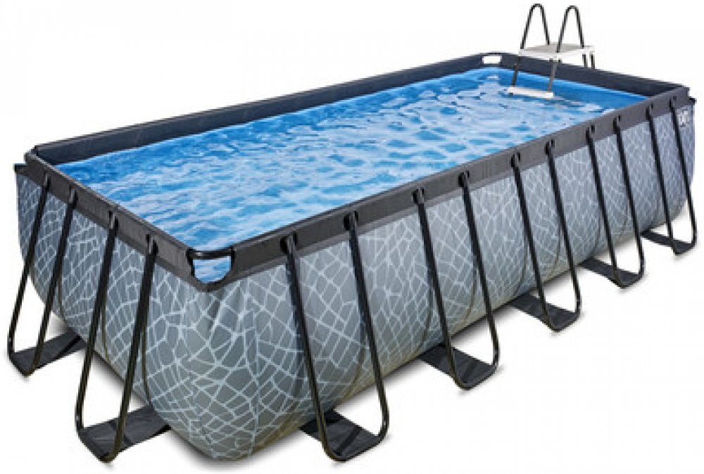Bazén EXIT Stone 540 x 250 x 122 cm je obdélníkový bazén s šedým rámem. Tento velký bazén je standardně vybaven filtračním čerpadlem Sand a bazénovým žebříkem, který umožňuje bezpečný vstup a výstup z bazénu. Rámový bazén nabízí dostatek prostoru, abyste se mohli vyřádit na nafukovací matraci. Chcete se raději potápět? Bazén EXIT Stone je hluboký 122 centimetrů, takže se v něm můžete skutečně potá...