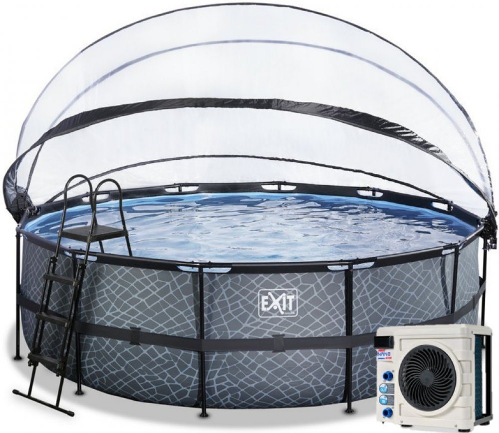 Bazén EXIT Stone ø450 x 122 cm je kulatý bazén s šedým rámem a krytem. Tento velký bazén je standardně vybaven filtračním čerpadlem Sand , tepelným čerpadlem a bazénovým žebříkem, který umožňuje bezpečný vstup do bazénu a výstup z něj. Vzhledem k velkému průměru bazénů je v nich dostatek prostoru pro cákání na nafukovací matraci. Chcete se raději potápět? Bazén EXIT Stone je hluboký 122 centimetrů...