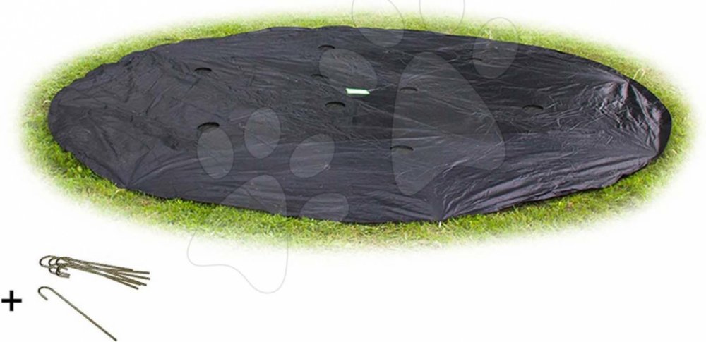 EXIT pozemní trampolínový kryt ø305cm Kryt EXIT pozemní trampolíny chrání vaši trampolínu za každého počasí. Tento černý kryt je vhodný pro kulaté trampolíny Supreme a InTerra o průměru 305 centimetrů. Chybí vám v zimě úložný prostor pro trampolínu nebo se vám prostě nechce trampolínu demontovat a znovu sestavit? S krytem trampolíny chráníte trampolíny EXIT Toys před povětrnostními vlivy, jako je déšť, sníh, led a UV paprsky, ale také před nečistotami, jako jsou listí ze stromů. Kryt lze snadno připevnit pomocí přiložených kolíků do země. Odtokové otvory v trampolíně zajišťují, aby na trampolíně nezůstávala voda a kryt obsahuje síťku, která zabraňuje vniknutí nečistot pod kryt. Prodlužte životnost své trampolíny s kryty EXIT Toys! Obsahuje: Velikost zemního krytu ø305cm Sada kotev