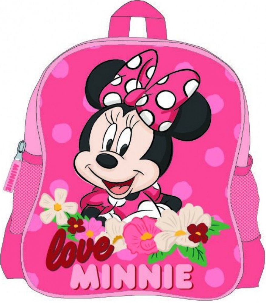 Dětský batůžek s obrázkem oblíbené myšky Minnie Mouse je vhodný pro předškolní děti i malé školáky na výlety. Batoh Minnie Mouse - Disney má jednu hlavní komoru se zapínáním na zip, na stranách dvě síťové kapsy na láhev. Má široké popruhy, které lze délkově nastavovat, ouško pro přenášení v ruce nebo pověšení. Rozměry batohu jsou 31 x 27 x 10 cm.
