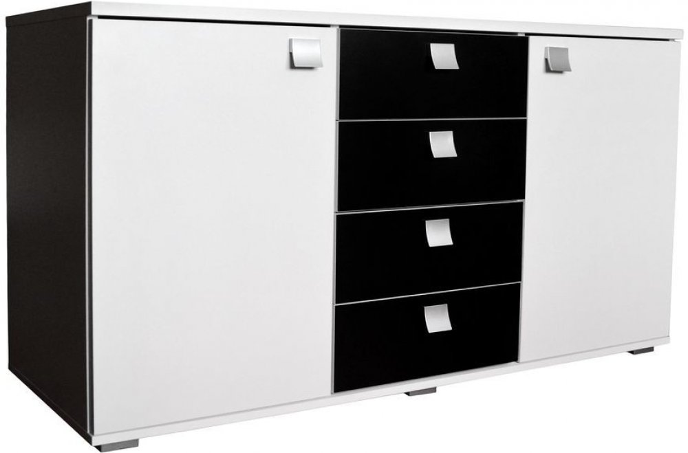 Komoda AGARIO II. Je vyrobena z vysoce kvalitních laminátových desek o síle 1,6 cm. Korpus je z desek v bílé matné barvě a doplňují jej přední lesklé části, které jsou potaženy akrylovou fólií, která dodává efekt vysokého lesku. Komoda poskytuje dostatek úložného prostoru v podobě dvou malých skříněk a čtyř zásuvek. Dvířka i zásuvky jsou opatřeny úchyty. Shrnutí: komoda vyrobeno z lamina 2 skříňky...