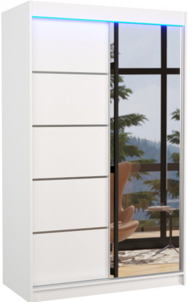 Posuvná skříň se zrcadlem ANCORA. Vyrobena je z kvalitního materiálu o tloušťce 1,6 cm. Skříň nabízí dostatek úložného prostoru v podobně volného místa s šatní tyčí a pěti policemi. Vnitřní část skříně zakrývají posuvné dveře se zrcadlem. Skříň je k dostání ve více barevných dekorech. Možnost varianty s LED osvětlením.Shrnutí:skříňposuvné dveřešatní tyče i policezrcadlovíce dekorů na výběrmožnost LED osvětlení materiály:LTD, PVC Parametry:ABS/PVC hrana : ANOBarva 1 : bíláImitace : bíláHloubka : 58 (cm)Výška : 200 (cm)LED osvětlení : NEMateriál 1 : LTDPočet dvířek : 2Šířka : 120 (cm)Tloušťka materiálu : 1,6 (cm)Typ skříně : posuvnáVnitřní uspořádání 1 : policeVnitřní uspořádání 2 : šatní tyčZrcadlo : ANOMateriál 2 : PVCPočet poliček : 5Styl : moderníUrčení : pro rodinuMateriál 3 : skloHmotnost : 112 kg