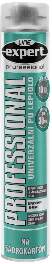 EXPERT LINE PROFESSIONAL univerzální PUR lepidlo na sádrokarton 750 ml je polyuretanové lepidlo na sádrokarton určeno k rychlému upevnění sádrokartonových desek. Připraveno k použití ihned po smíchání obsahu dózy. Vyznačuje se vynikající přilnavostí k většině stavebních materiálů (včetně mokrých). Po vytvrzení zaručuje vysokou tepelnou izolaci a v případě potřeby ji lze natřít univerzálními barvam...