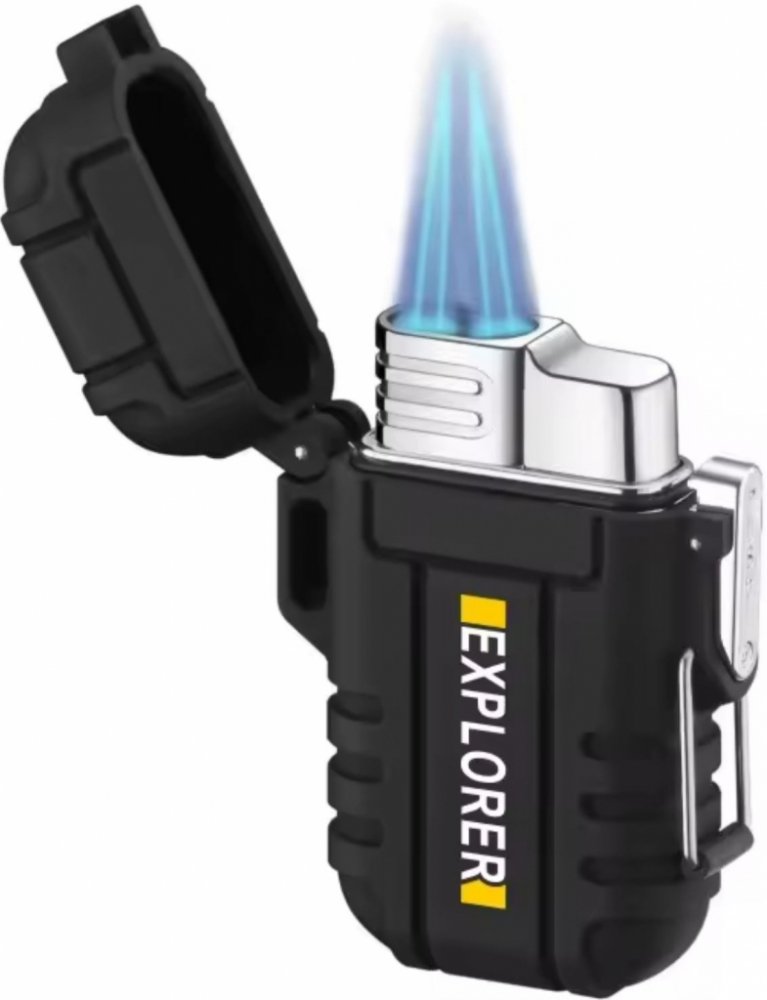 Outdoorový tryskový zapalovač se dvěma turbohořáky.. Zapalovač je vodotěsný a díky pogumovanému povrchu se skvěle drží v ruce a produkuje plamen o teplotě až 1,300 °C. Dá se tak v nouzi použít ke svařování či pájení měkkých kovů. Zapalovač je použitelný až do 2,200 metrů nadmořské výšky. Dodáván bez naplnění, je třeba naplnit pomocí plynu do zapalovače.