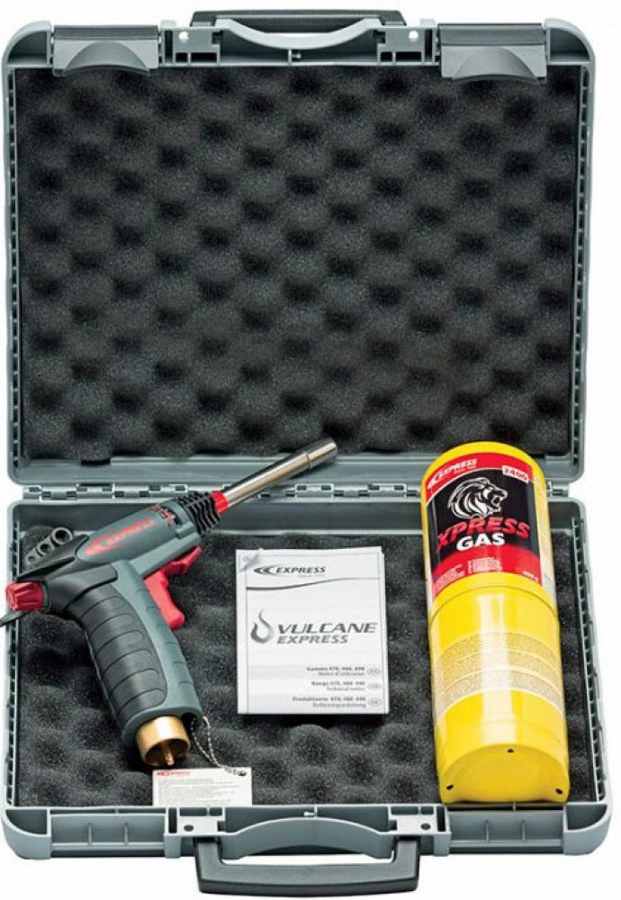 Nejvýkonnější hořák ve své kategorii.Tepelný výkon 5,5 kW tvrdé pájení mědi do 35 mm.Mobilní hořák Vulcane Express piezo-zapalování pomocí spouště.Regulace velikosti plamene.Plamen je stejný v jakékoliv poloze.Odolná konstrukce hořáku z materiálu Laiton, Inox, Zamak.Při použití plyn PRO-MAX – propylen je teplota plamene 2.400°C.Kufřík SOLO obsahuje:Hořák Vulcane Express zapalování pomocí spouště.Hořák s nejvýkonnější tryskou 4735 (na tvrdé pájení do Ø 35 mm).1 ks láhev plynu propylenu 400 g.