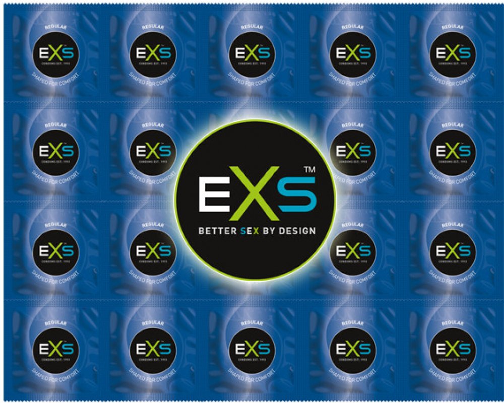 Kondomy EXS Regular poskytují ochranu před těhotenstvím a sexuálně přenosnými infekcemi, včetně HIV. EXS kondomy mají jedinečný design, který má speciální rozšířenou špičku pro větší pohodlí a snadné nasazování. Mají tloušťku 0,073mm a jsou vhodné pro všechny. Poskytují hladký, hedvábný pocit na pokožce a jsou vhodné pro vaginální, orální i anální sex. Jsou bez zápachu a chuti.