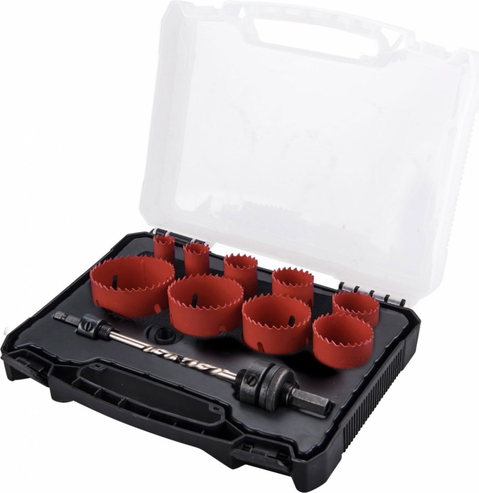 tělo vrtáku z bimetalu se zuby z HSS oceli a otvory ve stěně pro účinný odvod vrtaného materiálu