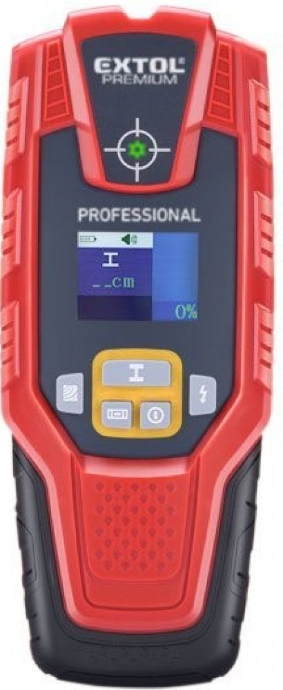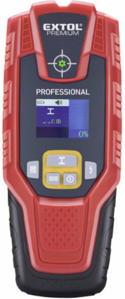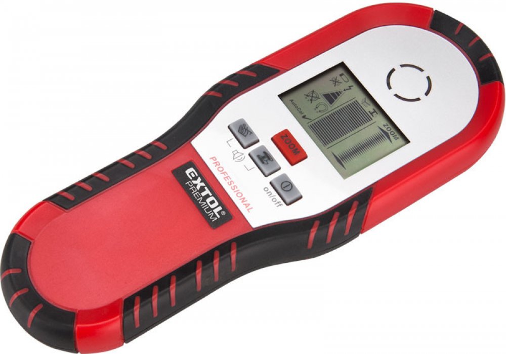 Hloubka detekce: železné kovy - 100 mm, neželezné kovy - 80 mm, el. vedení pod napětím - 50 mm, dřevo - 20 mm