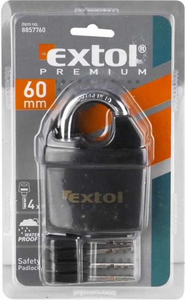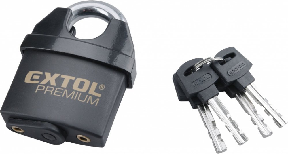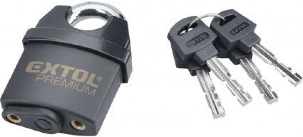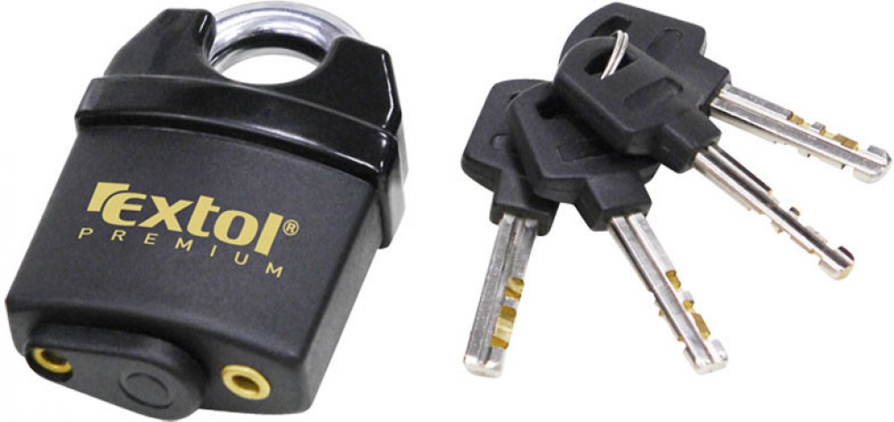 - Tělo zámku je potažené plastovým krytem, což zvyšuje odolnost proti vodě a špatném u počasí.