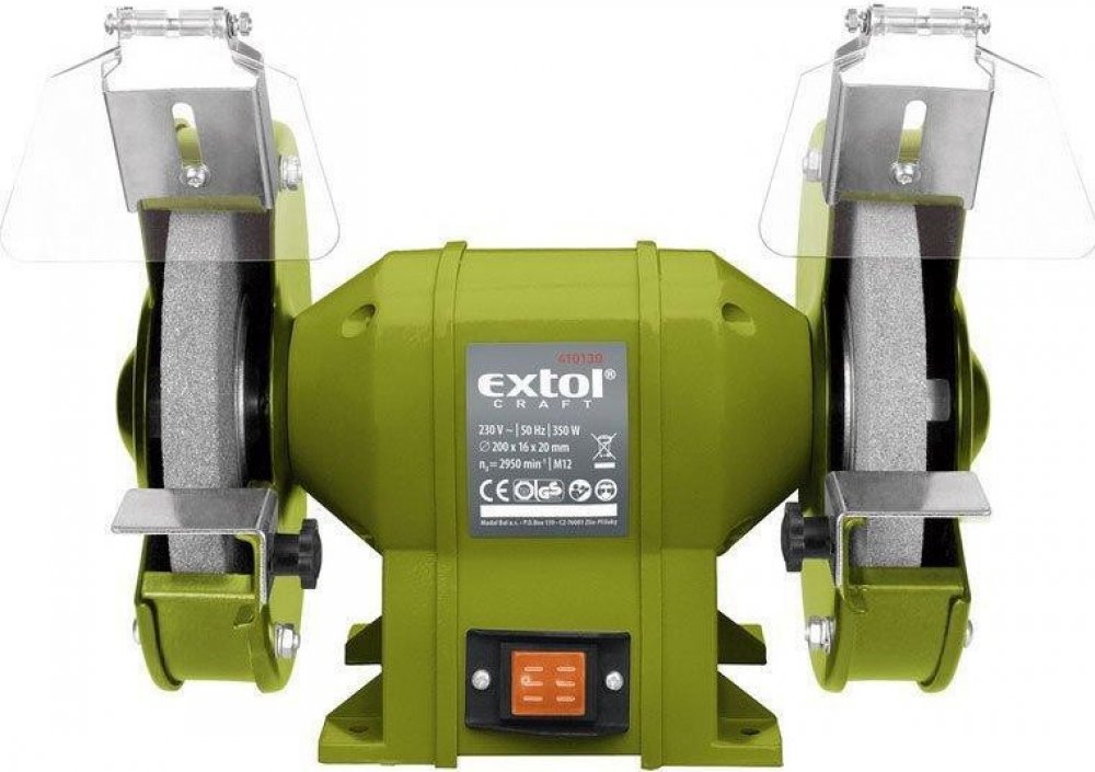 350 W 200 mm 2950 ot/min 10 kg Extol kotoučové M 16 20 mm 350 W 230 V hobby elektrické na kovy pro obecnou přípravu povrchu pro stacionární použití kartáčový 370 × 290 × 265 mm s vyššími vibracemi a hlučností