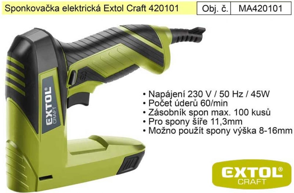 Elektrická sponkovačka/hřebíkovačka je určena k připevňování textilií, fólií, kůže, lepenky, dekoračních a izolačních materiálů na dřevěný nebo dřevu podobný materiál s použitím hřebíků a spon.