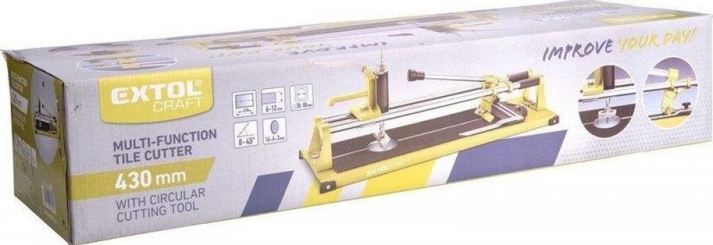 Průměr otvoru 30-80mm, úhloměr pro řez 0-45°, max. rozměry obkladačky: 400mm, max. tloušťka řezaného materiálu 6-16mm dle typu.