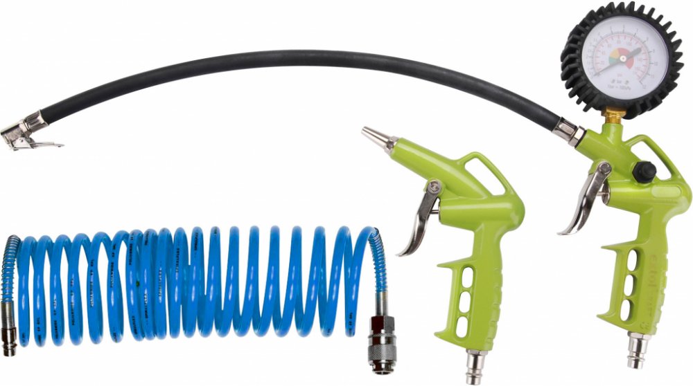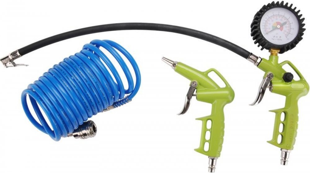Popis: pistole ofukovací, pistole foukací s manometrem, spirálová hadice 4 m s rychlospojkami