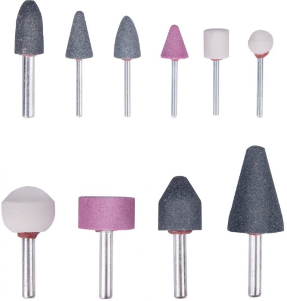 Sada obsahuje tělíska se stopkami o průměru 3 mm a 6 mm, což zajišťuje jejich kompatibilitu s různými typy nástrojů. Tato sada je ideální volbou jak pro domácí kutily, tak pro profesionály, kteří potřebují kvalitní a odolné příslušenství pro své brusné práce.