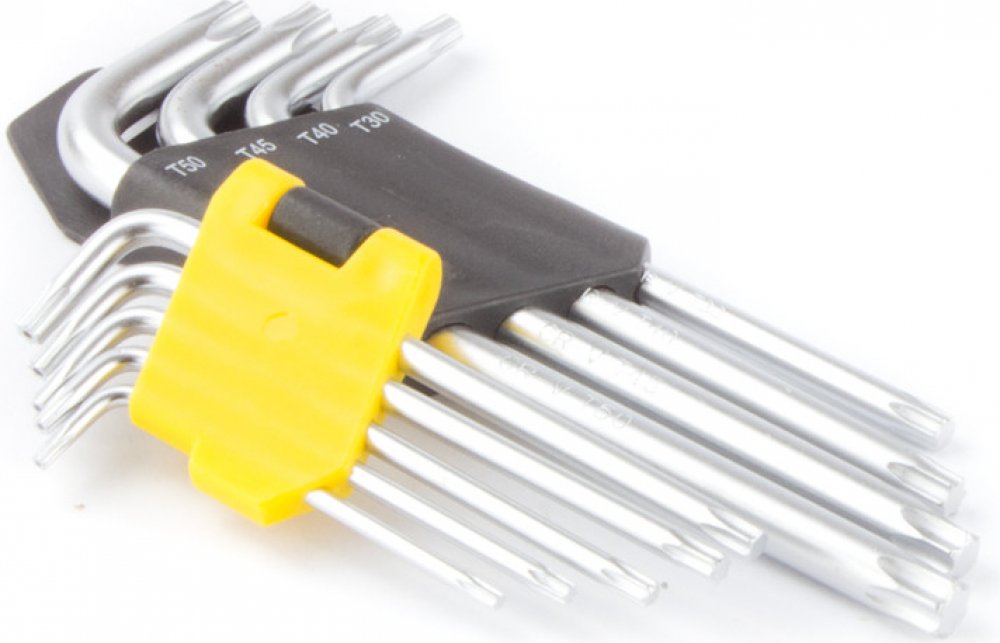 Sada nejpoužívanějších rozměrů L klíčů TORX - zkrácená délka. Klíče jsou vyrobeny z kvalitní chrom-vanadiové oceli a tvrzené v celé délce. Sada je dodávána v praktickém plastovém pouzdře, kde má každý rozměr svoje místo.