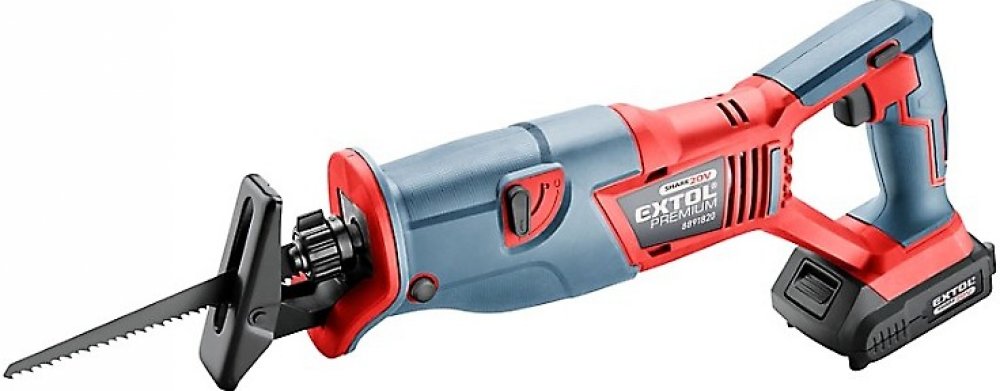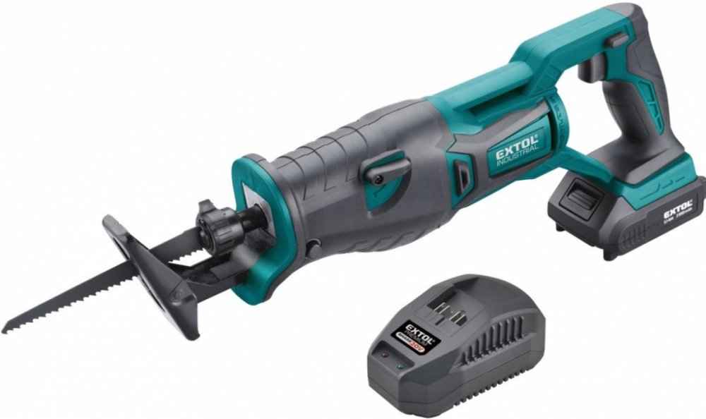 Extol Industrial 8791820 SHARE20V je výkonná aku mečová pila s jedním 2.0Ah akumulátorem. Je ideální pro řezání různých materiálů, jako je dřevo, umělá hmota a kovy, a to jak v dílně, tak i v garáži nebo na zahradě.