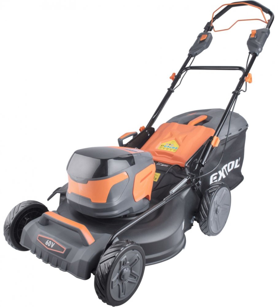 Extol 51 cm 5.0 km/h plastové 25 kg s pojezdem akumulátorové bubnové 60 l 1200 m2 1800 W 60 V 8 Ah s elektromotorem 3300 ot/min 80 mm 1 textil bez aku 6