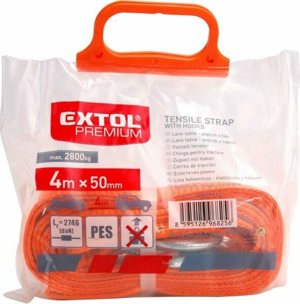 Lano tažné Extol Premium (8861160) lano tažné - popruh s háky, 4m x 50mm, max. tažná síla 2800kg, ocelové háky na koncích, PES