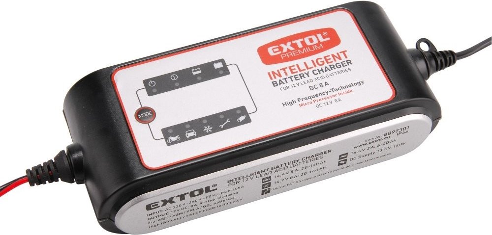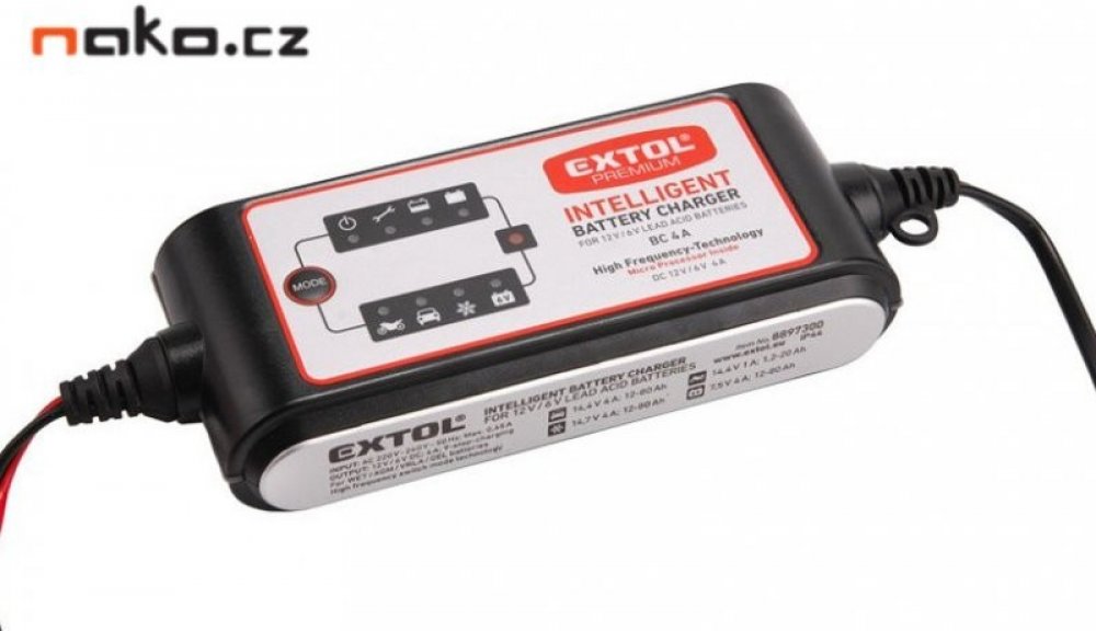 Autonabíječka 9stupňová, řízená mikroprocesorem, 12/6V, 4A, EXTOL PREMIUM