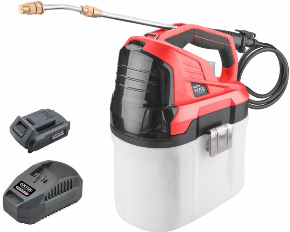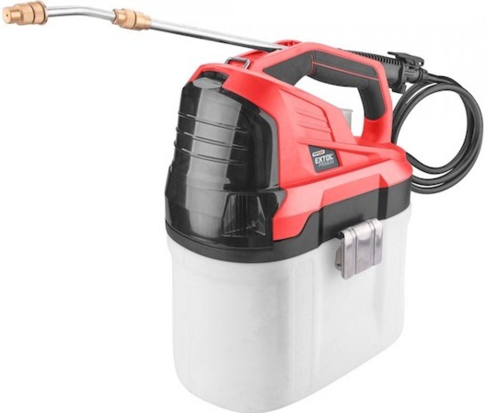 Tlakový aku postřikovač ke stříkání čisté vody pro rosení či zalévání rostlin, naředěných prostředků proti škůdcům rostlin, ochrana akumulátoru proti vodě. EXTOLTechnické specifikace: