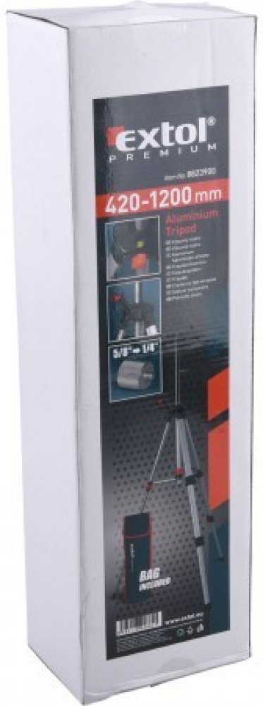 Výsuvný stativ EXTOL Premium s nastavitelnou výškou 420–1200 mm je ideálním řešením pro přesné umístění měřicích přístrojů, jako jsou laserové dálkoměry nebo nivelační přístroje. Díky robustní konstrukci z hliníku nabízí spolehlivou stabilitu a přesnost při různých úkolech.