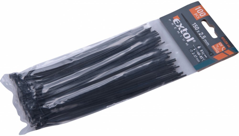 Extol 100 ks černé 150 mm 2.5 mm nylon