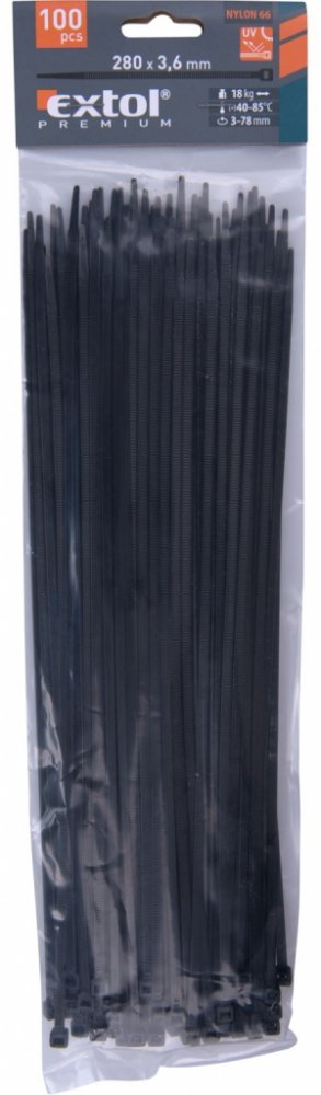 Extol 100 ks černé 280 mm 3.6 mm nylon