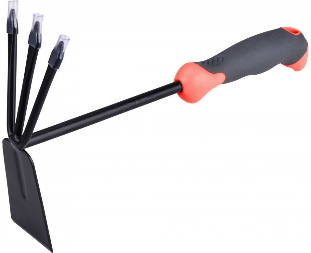 Zahradní motyčka s tříhrotým kypřičem půdy má ergonomicky tvarovanou rukojeť vyrobenou z polypropylenu, měkčená pryžová úchopová část zaručuje příjemné držení. Motyčka je vyrobena z plechu o síle 2,5 mm a je dlouhá 31 cm. Její součástí je také kypřič půdy se 3 hroty. Zahradní motyčka by neměla chybět mezi základním zahradnickým náčiním každého zahradníka.