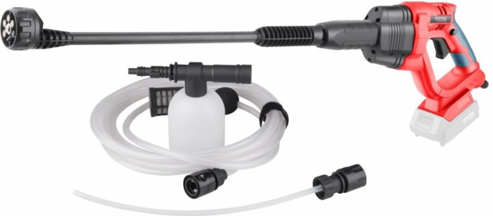 Aku tlakový čistič je určen k tlakovému čištění vodou s max. tlakem 22bar, čímž se řadí mezi střednětlaké čističe.