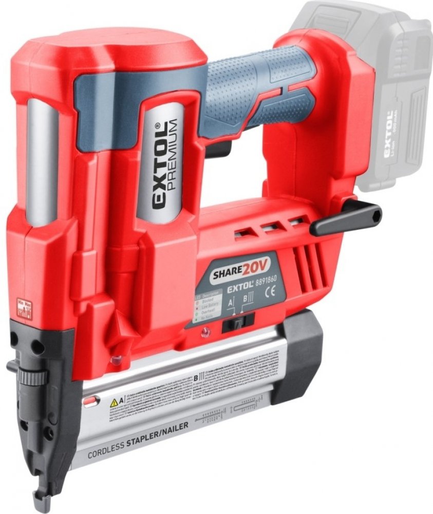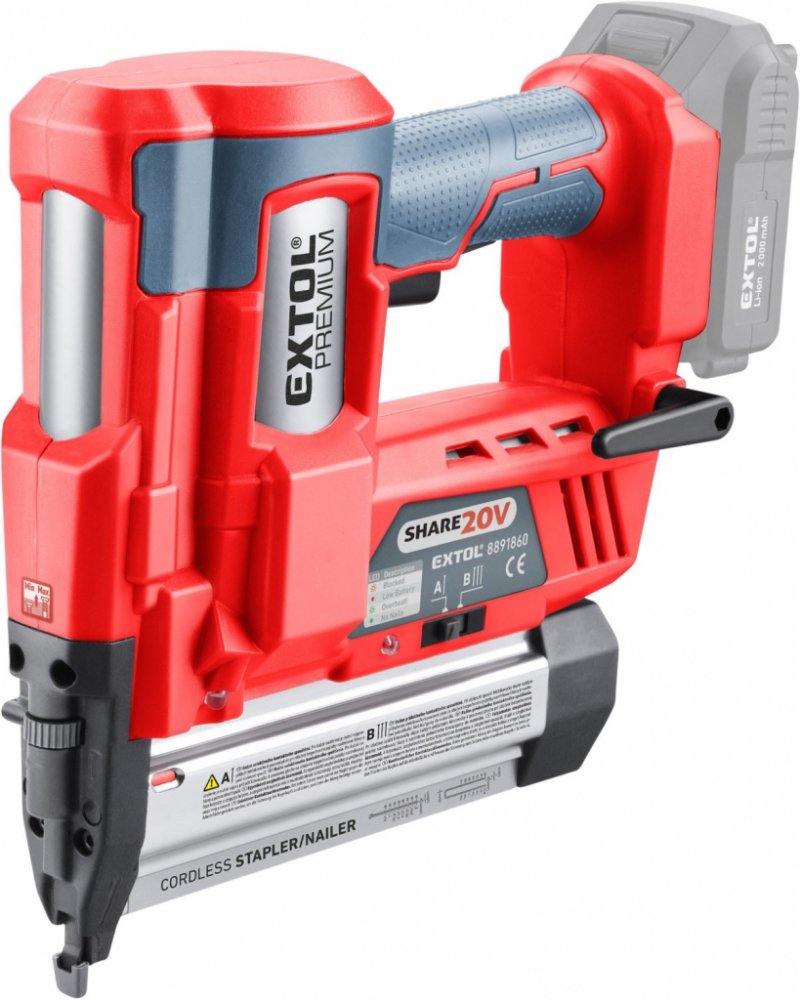 2v1 funkce této 20V aku hřebíkovačky/sponkovačky s ní dělají ideální nástroj pro domácí úpravy, jako jsou truhlářské práce, instalaci lišt obložení, izolace, plastových folií, čalounění a další dokončovací práce. Napájení akumulátorem poskytuje konzistentní a spolehlivý výkon díky silné 20V lithium-iontové baterii a eliminuje potřebu hlasitého a těžkého kompresoru a manipulaci s dlouhou vzduchovou hadici. Hřebíkovačka může vystřelit až 60 hřebíků za minutu. Při práci si můžete zvolit ze dvou režimů: režim jednotlivého odpálení, který se používá pro přesné umístění hřebíků a kontaktní režim, při kterém hřebíkovačka vystřelí při kontaktu s materiálem. Gumová špička chrání materiál, při kontaktu a dvoustupňový spoušť chrání uživatele před náhodným vystřelením. Akumulátor lze použít ve všech typech nářadí řady EXTOL SHARE20V. Díky Li-ion technologii je možné akumulátory kdykoliv dobíjet, aniž by se tím snižovala jejich kapacita. Li-ion akumulátor ztrácí energii vlivem samovybíjení velmi pomalu a vydrží dlouho nabitý a připravený k použití.