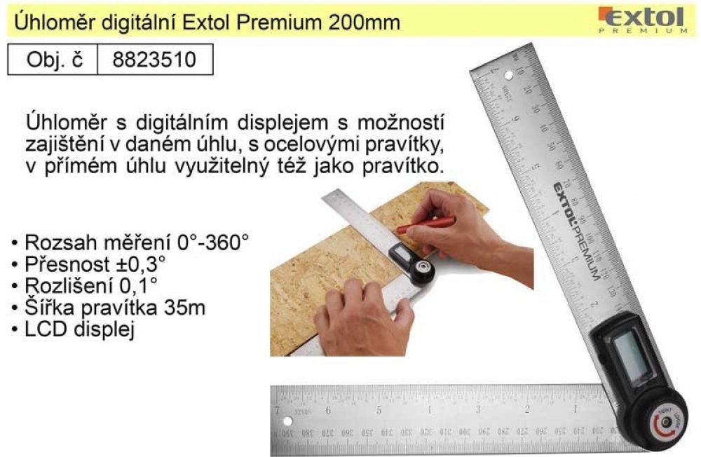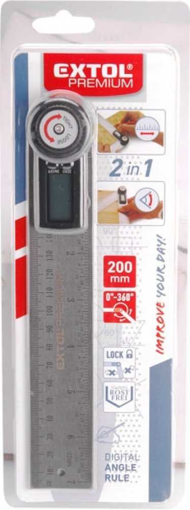EXTOL PREMIUM digitální úhloměr, s pravítkem 200mm 8823510