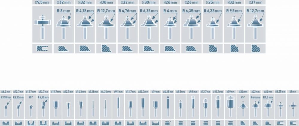 EXTOL PREMIUM Frézy tvarové do dřeva s SK plátky, sada 35ks, stopka 8mm