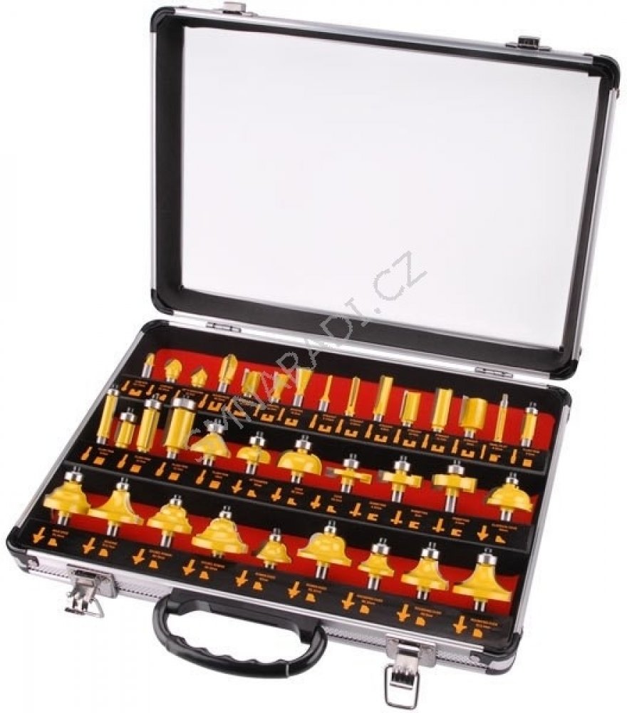 Frézy tvarové do dřeva s SK plátky, sada 35ks, v kovovém kufru, SK, EXTOL PREMIUM