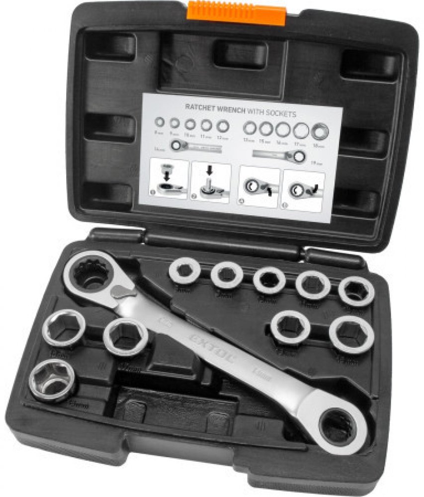 Extol Premium klíč ráčnový tvarovaný a vložky sada 11ks 8-19mm 8816101