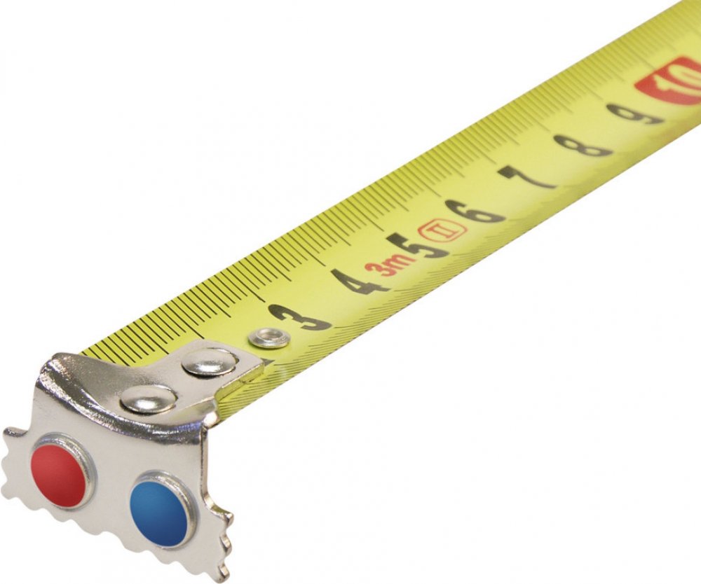 Svinovací metr vyznačující se třídou přesnosti II, což je profesionální stanadard na evropském trhu. Mezi nejpotřebnější vlastnosti dobrého svinovacího metru patří pevnost vysunutého pásku ve vztyčené poloze a horizontální poloze.