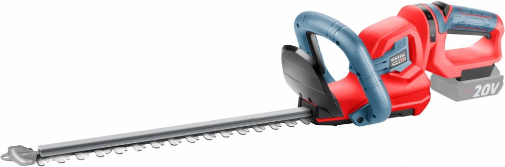 Aku nůžky jsou určeny ke stříhání živého plotu až se středně silnými větvičkami v domácích zahradách. Maximální průměr střihaných větví je 16mm. Ostrá stříhací čepel si snadno poradí s živým plotem a je osazena hliníkovou lištou, která ji chrání před poškozením. Tuto čepel lze otáčet až o 90˚ což usnadňuje stříhání ve vertikální i horizontální poloze. Proti odletujícím kouskům větví je uživatel chráněn pevným plastovým krytem. Stroj je vybaven bezpečnostní pojistkou, která se aktivuje při vyklouznutí z rukou a elektronickou doběhovou brzdou, která zajistí jeho rychlé zastavení. Pogumovaná rukojeť brání vysmeknutí, tlumí vibrace a zpříjemňuje držení při práci. Nůžky jsou navrženy tak, aby byly lehké a ergonomické. Mají dobře vyváženou konstrukci, která snižuje namáhání rukou a zad při delší práci. Díky napájení z baterie již není nutné dávat pozor na napájecí kabel a manipulace s nimi je pohodlnější. Také nikoho nebude rušit hlukem, který vydávají benzínové modely. Aku nůžky nevyžadují složitou péči. Stačí je pravidelně čistit, udržovat ostří čepele a kontrolovat stav baterie. Pro běžnou práci dostačují jeden nebo dva 2Ah akumulátory, které můžete rychle nabít v rychlonabíječce, pro náročnější nebo delší práci doporučujeme větší akumulátory s kapacitou 4–8Ah. Akumulátor má indikátor nabití a lze použít ve všech typech nářadí řady EXTOL SHARE20V. Díky použité Li-ion technologii je ho možné kdykoliv dobíjet, aniž by se tím snižovala jeho kapacita. Li-ion akumulátor ztrácí energii vlivem samovybíjení velmi pomalu a vydrží dlouho nabitý a připravený k použití.