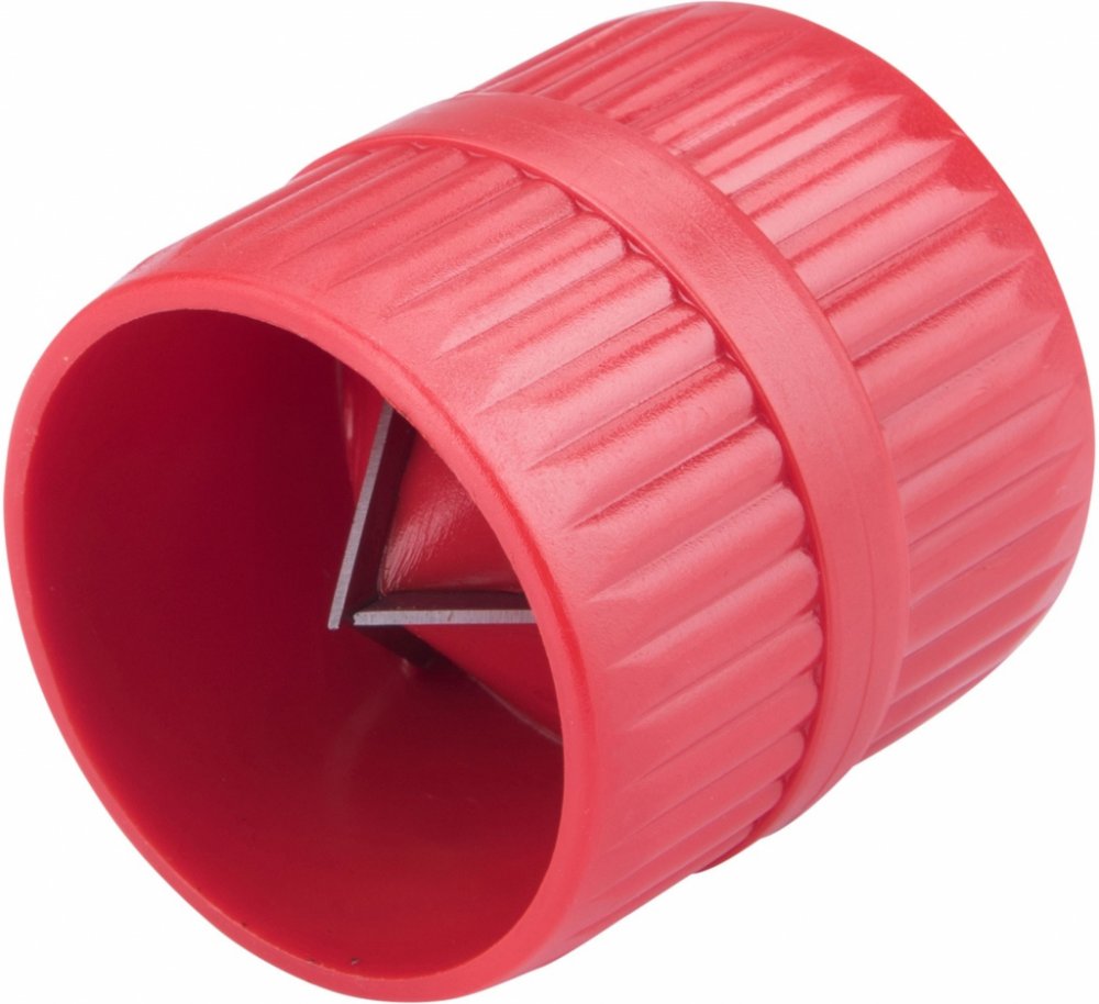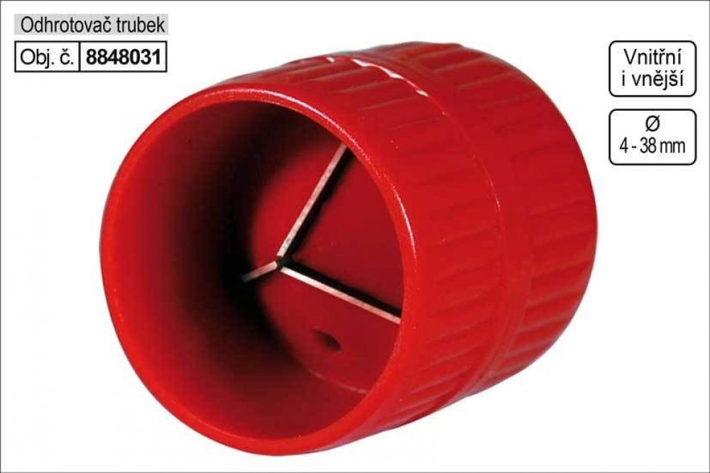 Plastové tělo, tři kalené broušené břity z HCS oceli, použití na odhrotování vnitřních i vnějších hran všech typů trubek.