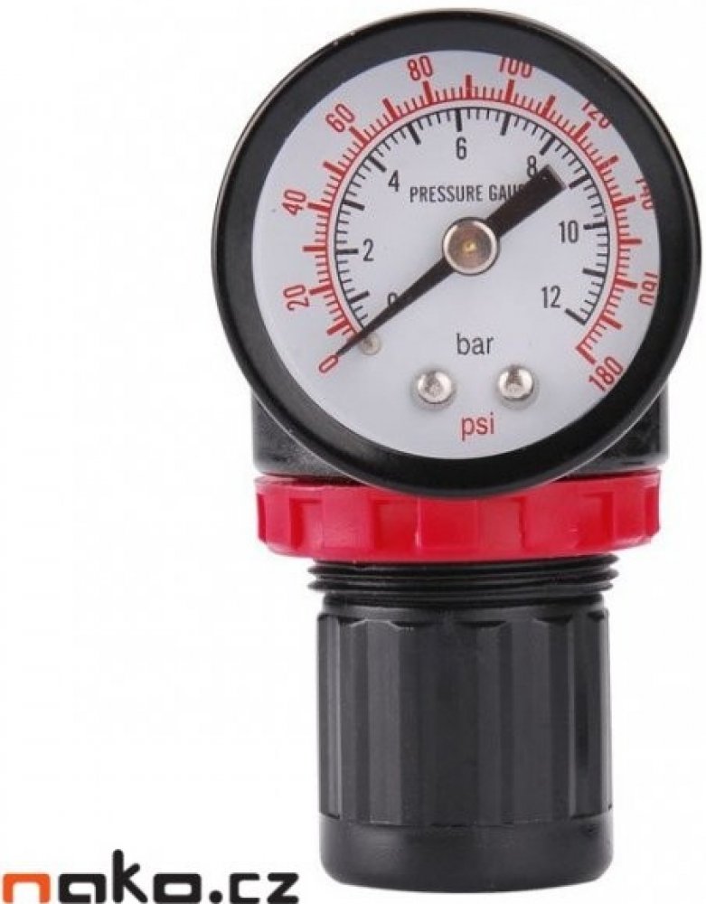 Regulátor tlaku s manometrem je určen k regulaci tlaku stlačeného vzduchu. Regulátor nalézá uplatnění při zajištění požadované hodnoty tlaku vzduchu na vstupu do pneumatického nářadí, neboť tato hodnota může být nižší v důsledku použití delší vzduchové hadice.