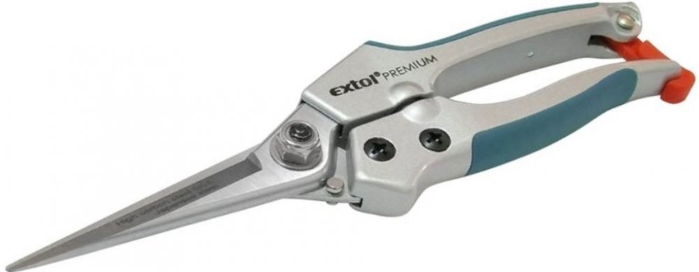 Nůžky jsou navíc opatřeny tlačnou pružinou, která nůžky rozevírá. Samozřejmostí je pojistka proti samovolnému rozevírání.