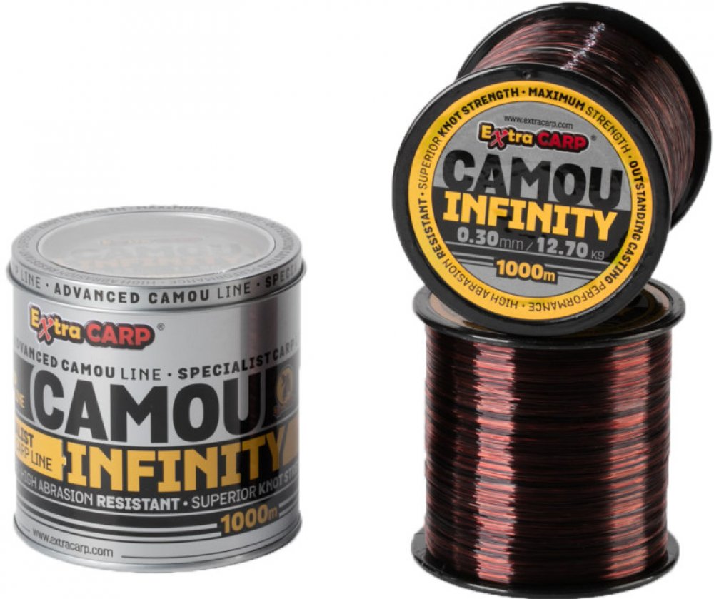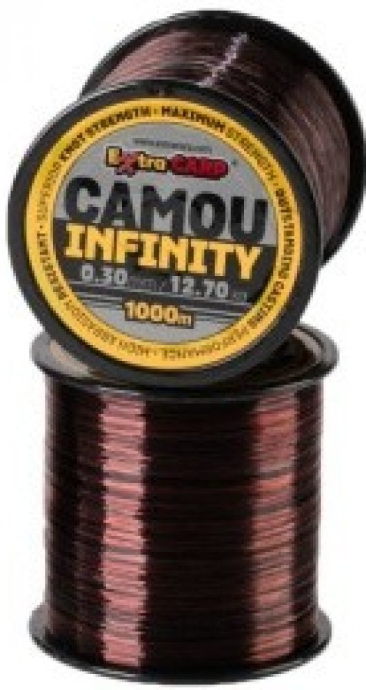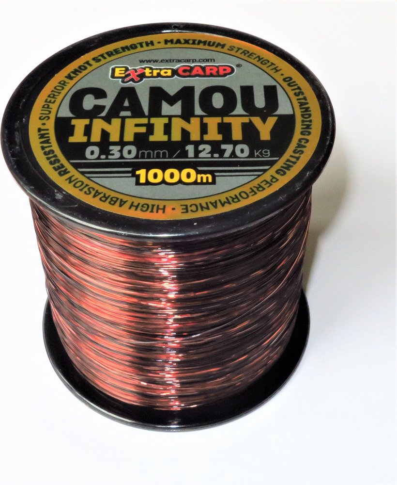 Infinity Camou představuje potápivý kaprový vlasec vyrobený na základě nejnovější japonské technologie pro to, aby splnit požadavky nejnáročnějších rybářů. Je to především vlasec určený pro daleké nahazování. Vlasec je velmi podajný, pevný a nekroutí se. Má vysokou pevnost jak v tahu tak i v uzlu a také velkou odolnost vůči oděru. Tento vlasec je téměř bezpaměťový. Jeho černo-červené kamuflážní zbarvení se velmi dobře přizpůsobí všem typům dna. Jedná se skutečně o špičkový vlasec pro lov kaprů za rozumnou cenu.