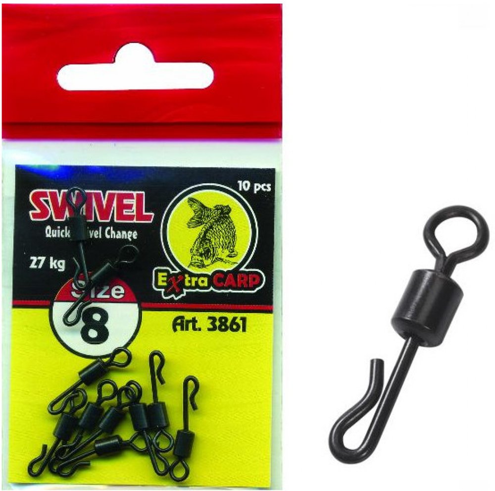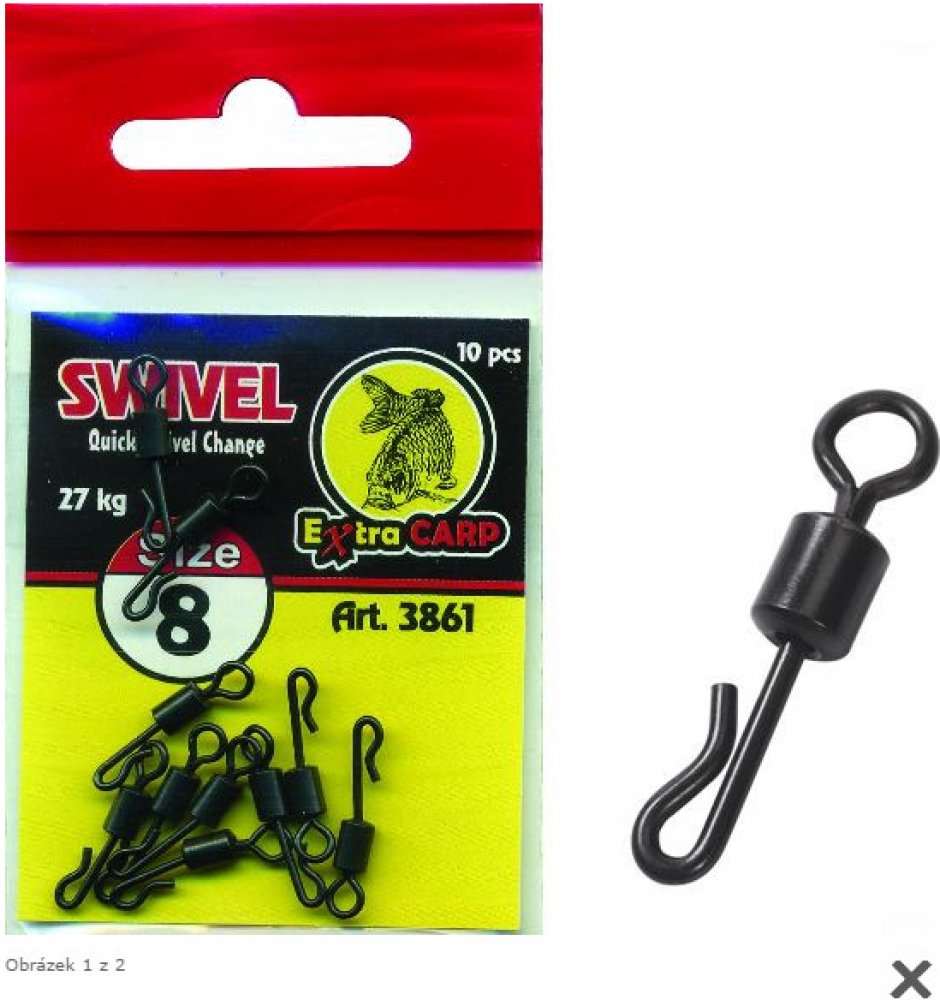 Obratlík Quick Change od Extra Carp se používá jako příslušenství při výrobě koncových sestav. Obratlík slouží k uvázání různých návazců. Díky obratlíkům se vlasce také méně zamotávají.