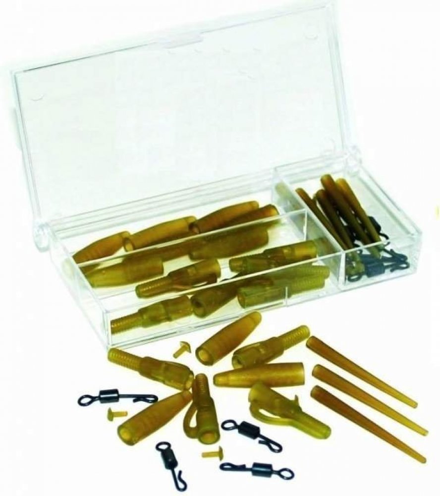 Závěs na zátěž s rychlovýmenným obratlíkem a silikon převlekem 10 ks + krabička ZDARMA! Tato nová závěska Extra Carp odolá každé zátěži a nikdy Vás nezklame. Jediná závěska na trhu, která nikdy nepraskne! Na závěsce jsou závity pro našroubování převleku Tail Rubber, aby lépe držel. Závěska má uprostřed precizní výřez pro umístění kolíku pro zafixování obratlíku.Nové provedení transparentní hnědé barvy, aby vaše koncová montáž lépe splynula s písčitým nebo bahnitým dnem ve vodě.Balení obsahuje:• 10 ks závěsů na zátěž• 10 ks převleků na závěsku• 10 ks kolíků na zafixování obratlíku• 10 ks rychlovýměnných obratlíků velikost 8• 10 ks Anti Tangle převleků proti zamotání