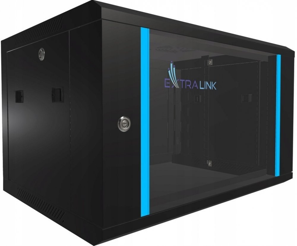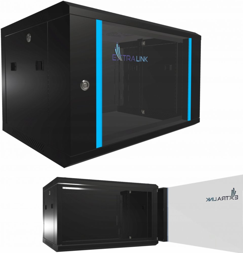 Skříň od společnosti Extralink je určena pro montáž na stěnu v kancelářích, síťových serverovnách a řídicích místnostech CCTV instalací. Vnější stěny jsou vyrobeny z ocelového plechu válcovaného za studena, zatímco přední dveře mají sklo z tvrzeného skla s možností otevírání na levou nebo pravou stranu. Sada obsahuje sadu klíčů, čtvercové matice M6 pro rackovou lištu, sadu pro sestavení skříně a kompletní sadu šroubů.