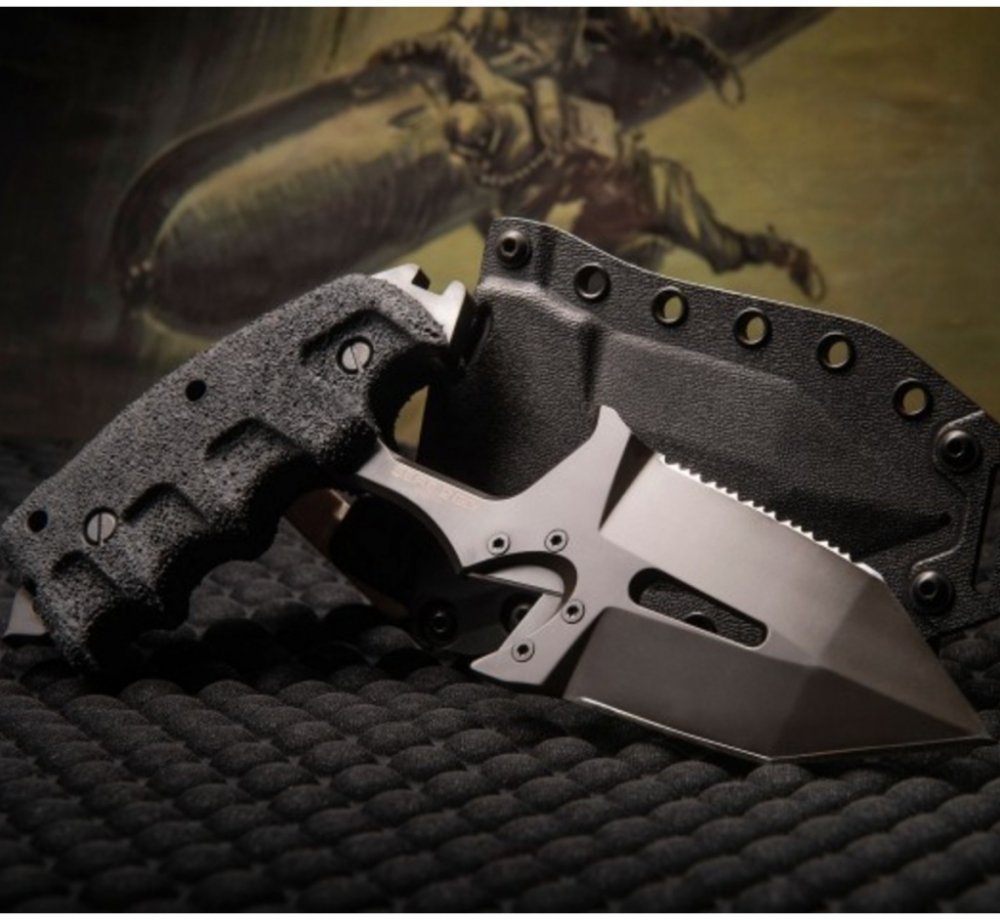Pouzdro kydex má základní retenci, kterou lze použít samostatně pro operátory, kteří potřebují extrémně rychlé použití nože, a v případě potřeby odnímatelný zajišťovací zámek. Nůž je dodáván s dvojitým trezorem, který lze upevnit na pravou i levou stranu. Vložka s plochým šroubovákem je k dispozici jako příslušenství.