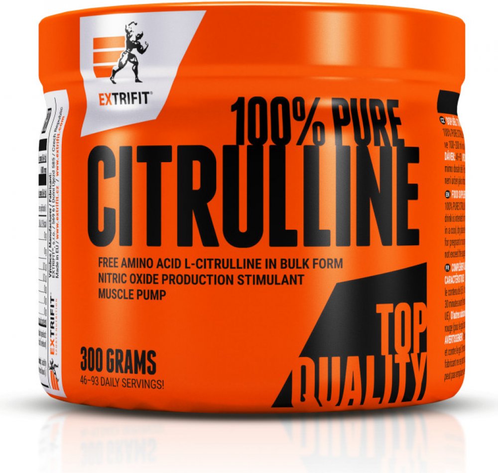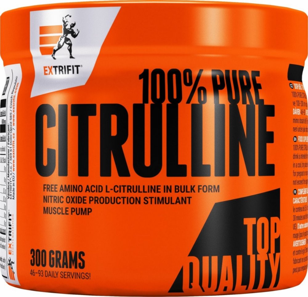 Extrifit Citrulline Pure Powder je neesenciální aminokyselina, která se účastní močovinového cyklu stejně jako v kulturistice známý L-arginin a L-ornitin. Citrulin je obsažen v některých potravinách (jako třeba ve vodním melounu, ze kterého byl odvozen i jeho název), ne ale v množství, které by vykazovalo takový účinek, jako když jej tělu dodáváte ve formě doplňků stravy. Ve sportu je citrulin znám především jako stimulant produkce oxidu dusnatého, díky kterému se ti při tréninku podaří svaly lépe prokrvit. Díky lepšímu prokrvení pak máš pocit lepšího napumpování, které samozřejmě souvisí i s lepším přívodem živin ke svalu. A ten hraje ve svalovém růstu velmi důležitou roli. Kromě toho může lepší prokrvení svalu a v důsledku toho vyšší přívod živin ke svalu zefektivnit jeho regeneraci, což je významné nejen pro kulturistiku, ale i pro další sportovní disciplíny.